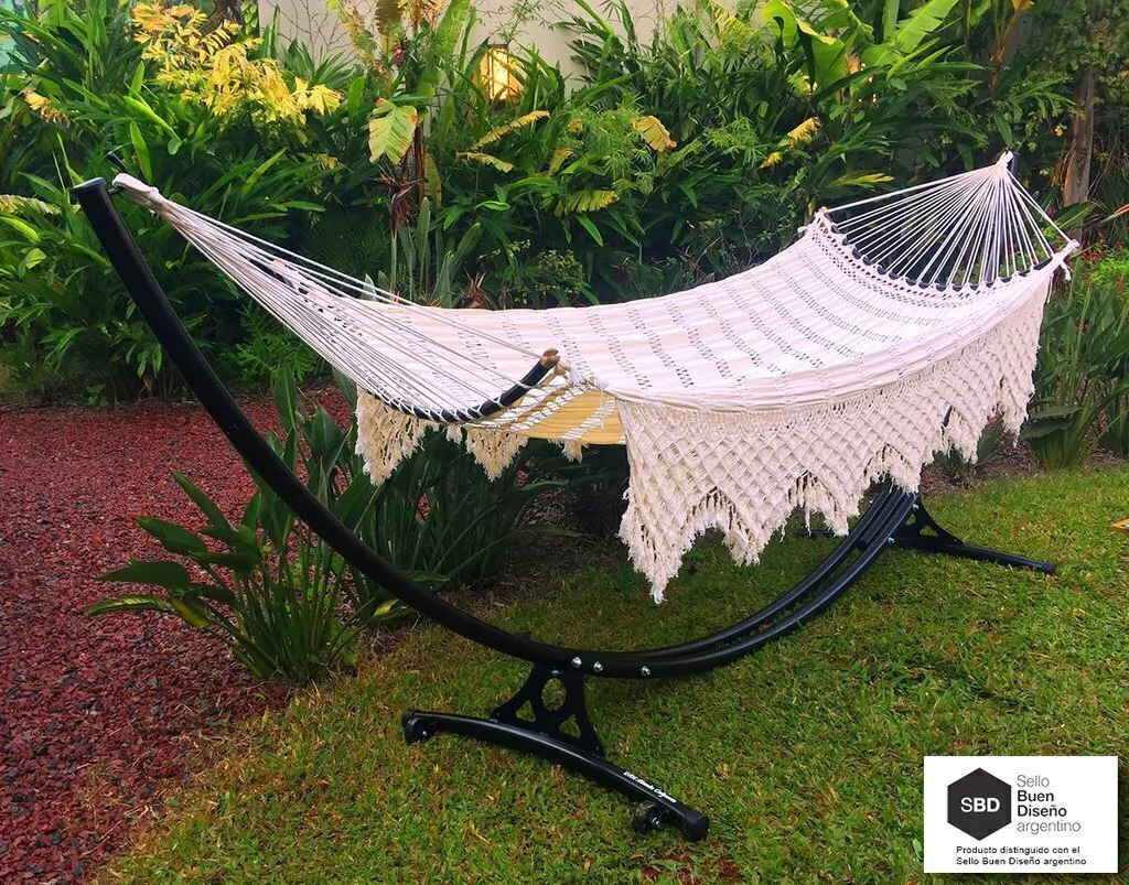 - Capacidad de carga: 180 kg, ideal para hamacas de 2 plazas o 2 ½.